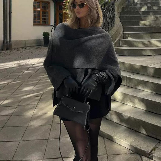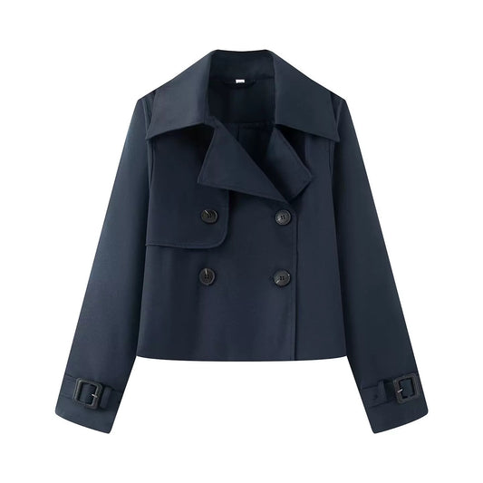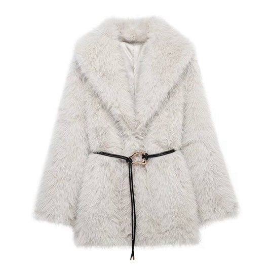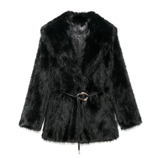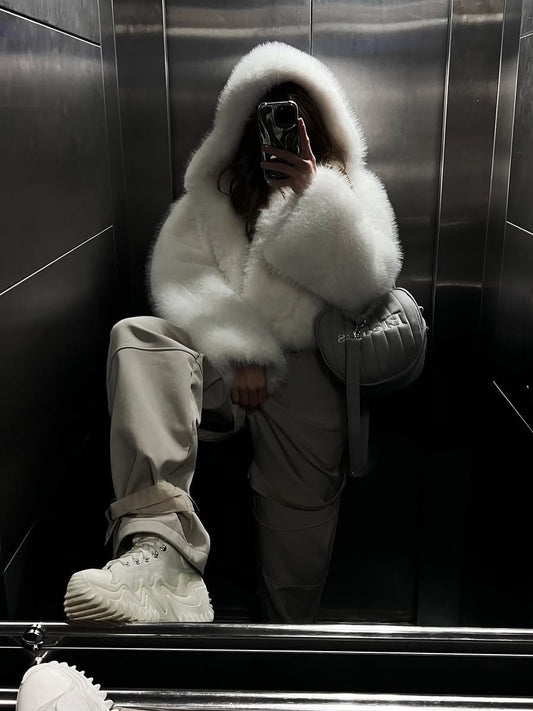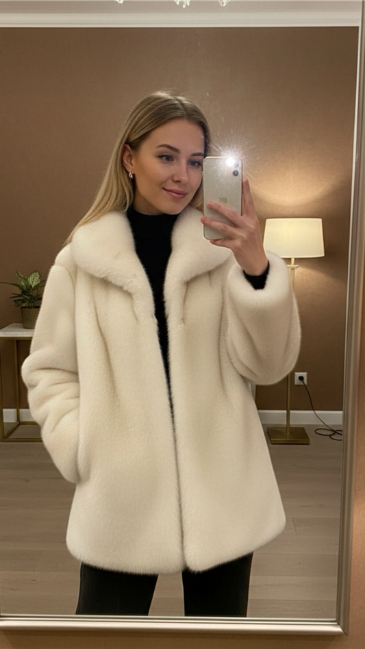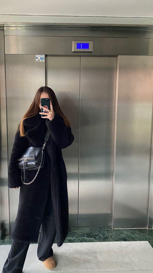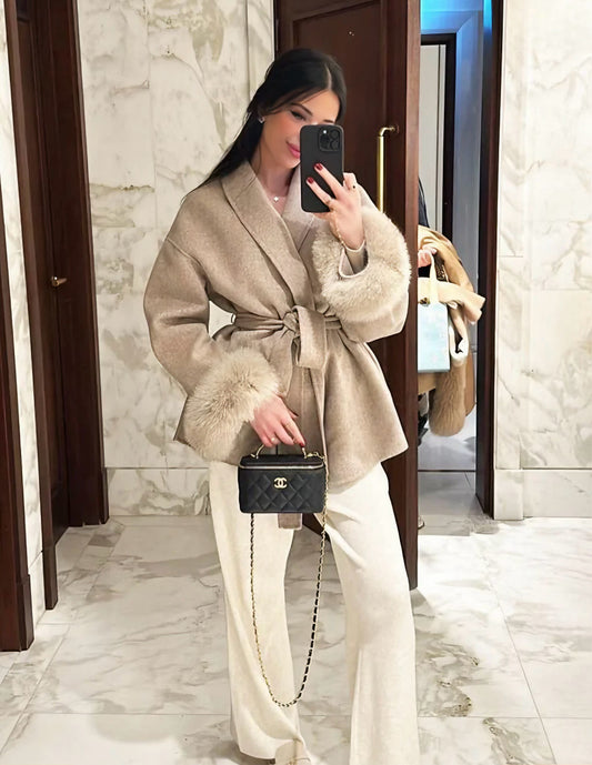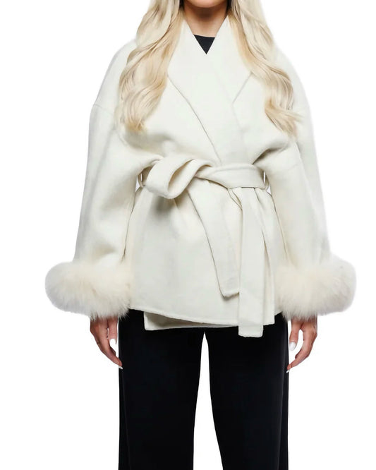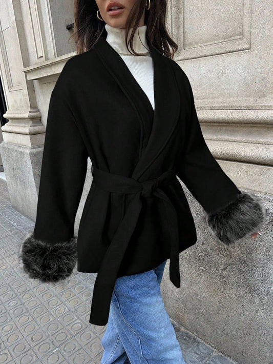 Kurzer Wollmantel mit Fellärmel Schwarz