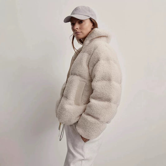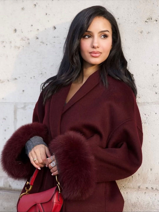 Kurzer Wollmantel mit Fellärmel Bordeauxrot