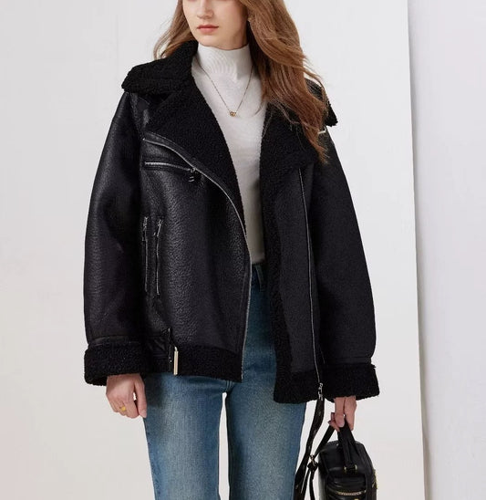 Jacke in Lederoptik mit Schulterriegeln Schwarz